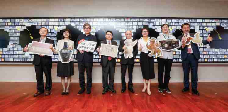 william威廉中文官网携手创利空间为故宫建置的智慧文物互动导览墙及轮播墙,,,今日正式启用。。。(左四:william威廉中文官网新事业暨投资管理总部副总经理杨本豫、、右四:故宫博物院院长吴密察、、右三:太极影音董事长黄宝云)